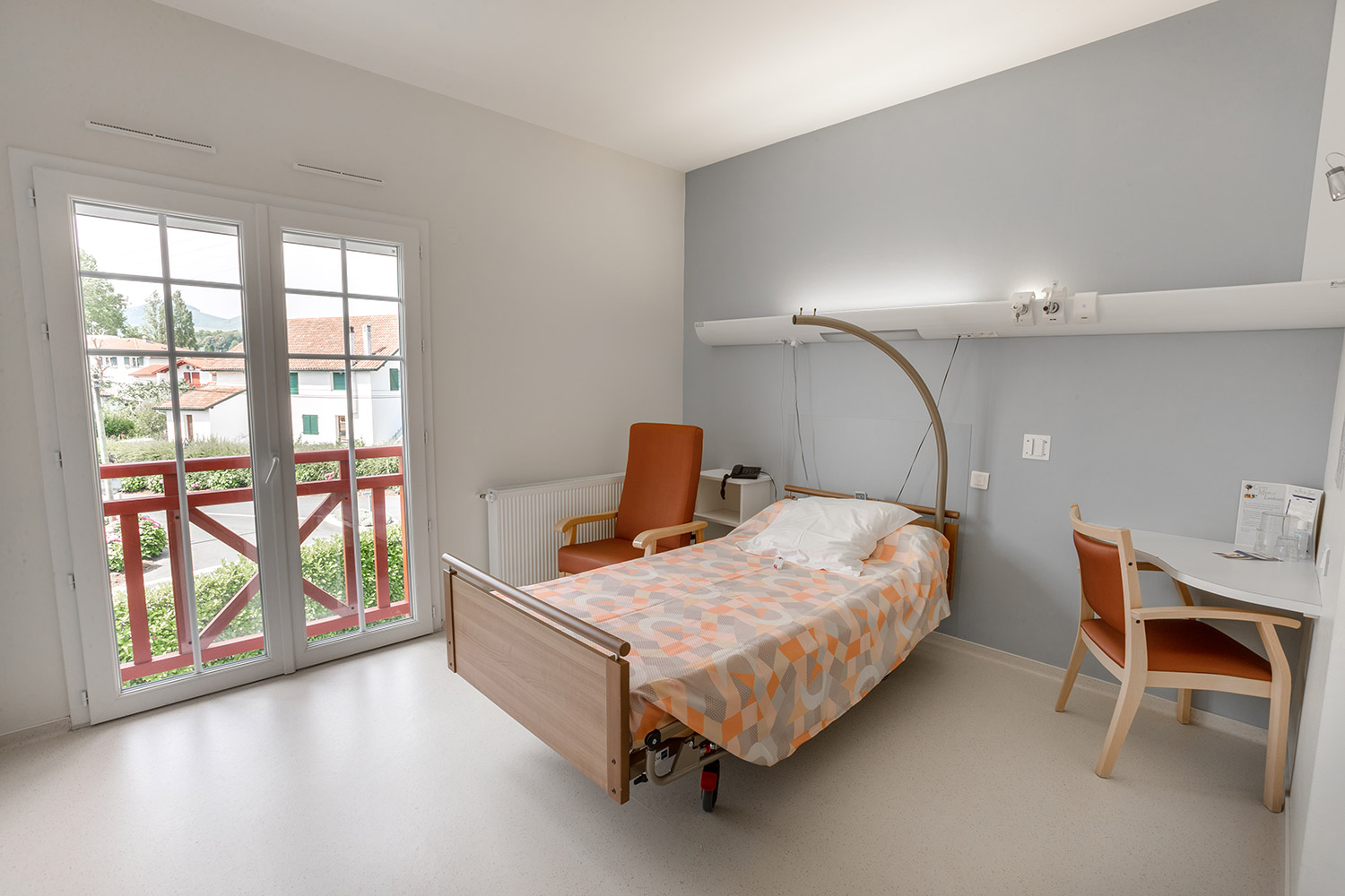 L’espace de rééducation est climatisé et équipé d’accès aux fluides médicaux.