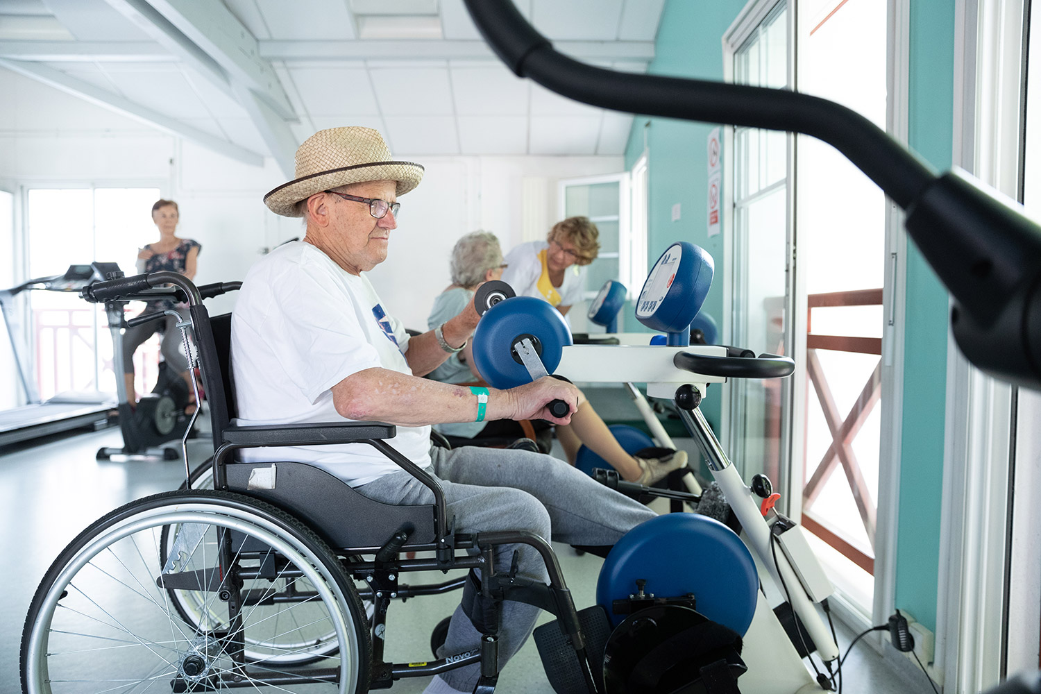 - Différents ergomètres (motomed, steepers, cycloergometre, tapis de marche, vélo elliptique, vélo semi-couché)